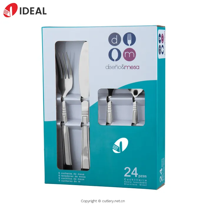 طقم أدوات مائدة من 24 قطعة من الفولاذ المقاوم للصدأ مع علبة أدوات مائدة فضية للمطاعم الفندقية