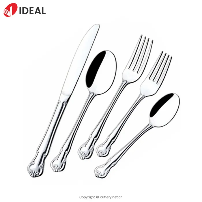 ست لوکس ۵ تکه چاقو، کارد، قاشق با طرح گل‌کاری‌شده از جنس فولاد ضدزنگ ۳۰۴