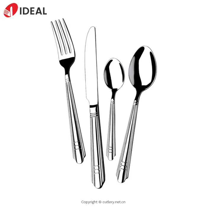 Conjunto de talheres de aço inoxidável com polimento e prata dourada Conjunto de talheres de design moderno com cabo Fantasia Talheres de aço inoxidável com banho de prata
