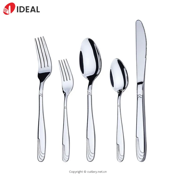 Набор столового серебра из нержавеющей стали с глянцевой полированной поверхностью, обладающей антикоррозийными и антипятнистыми свойствами